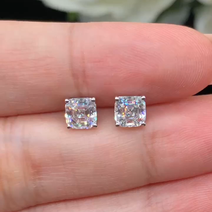 Asscher Shape Moissanite Stud Earrings-VOOGME