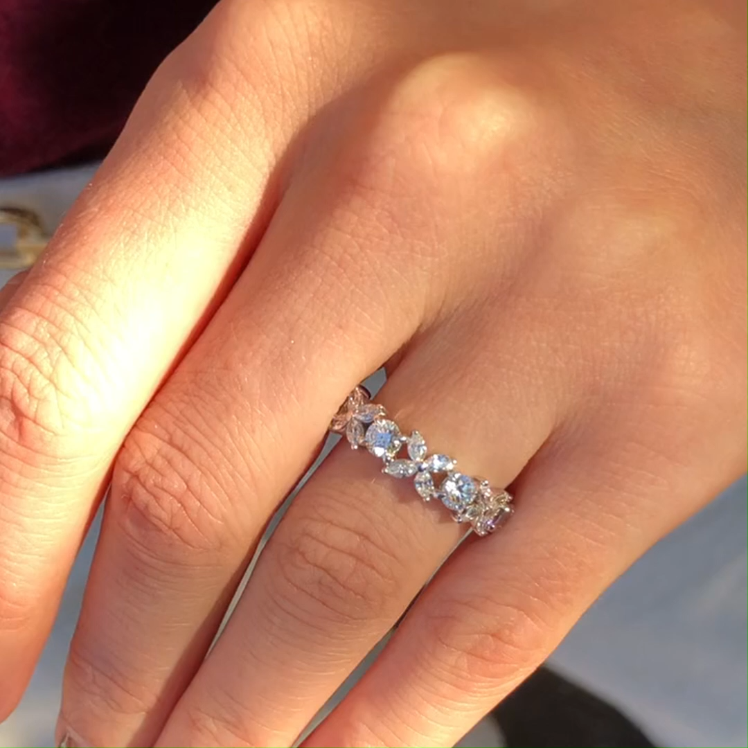 Aurora Clover Moissanite Wedding Band